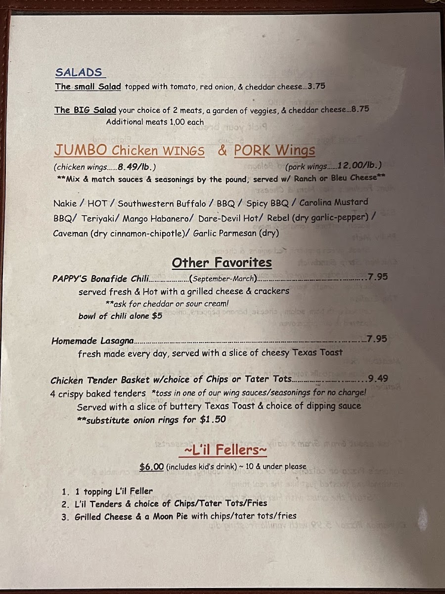 The menu at Fat Pappy's is a delightful assortment of hearty dishes. Drawing enthusiastic reviews for its Pappy's BBQ Pulled Pork, priced at just US$5.00, it's a must-try for anyone looking for authentic BBQ flavor. Just as tempting are the Homemade Lasagna and Baked Spaghetti—each bringing a touch of nostalgia and warmth to your dinner table. For something a bit lighter yet satisfying, look no further than their Chicken Tender Basket (US$9.49) or the diverse selection of starters like Pickle Fries and Cheese Sticks.